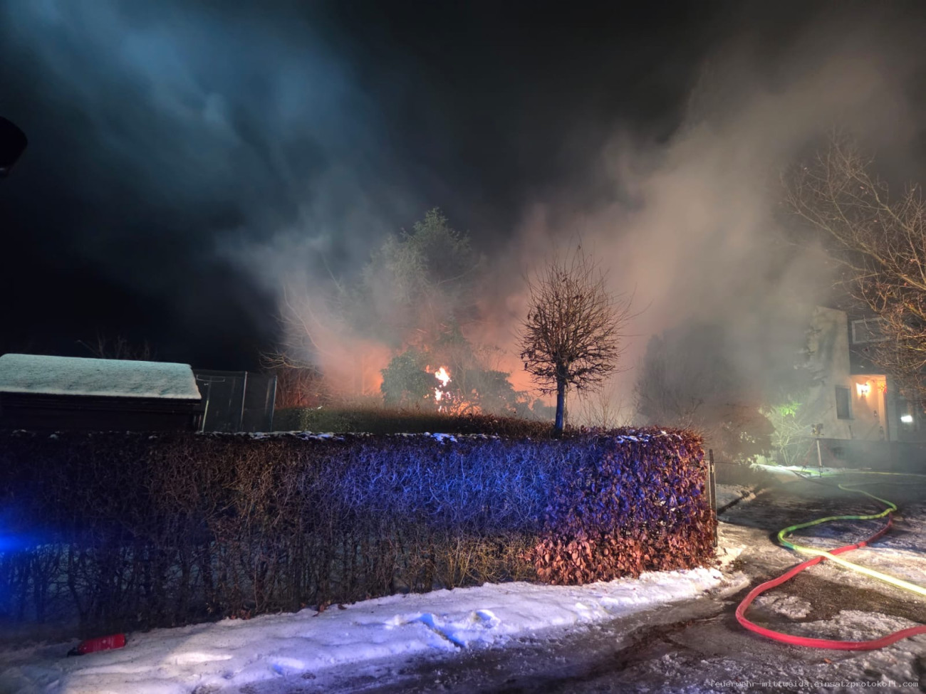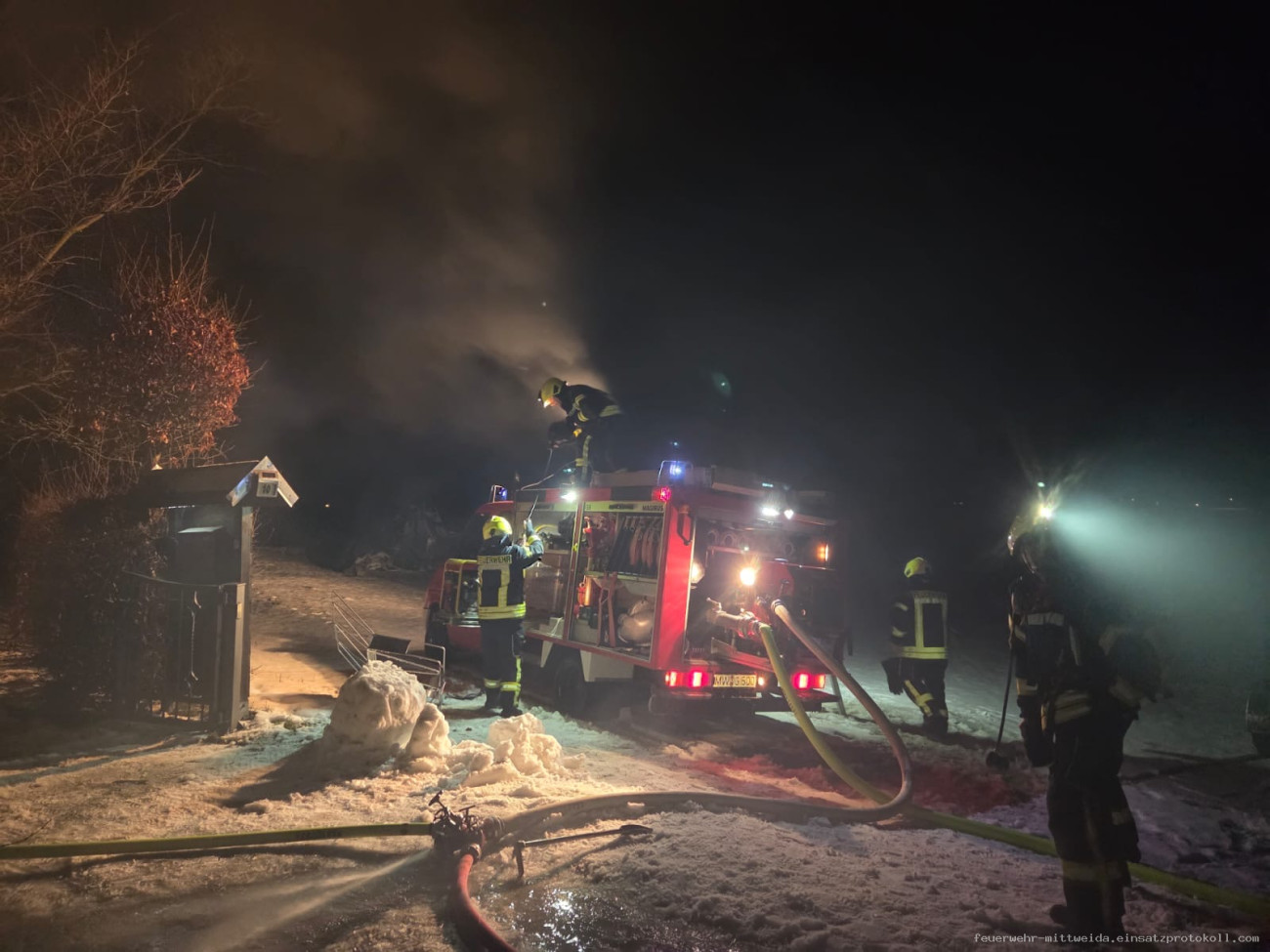 Der dritte Einsatz des Jahres führte uns, zusammen mit den Wehren Lauenhain und Tanneberg auf den Bleichweg. Hier brannten Müllcontainer und ein Unterstand in der Nähe eines Wohnhauses. Das Feuer konnte schnell unter Kontrolle gebracht werden. Parallel dazu wurde eine Löschwasserversorgung aus einem naheliegenden Teich aufgebaut. Abschließend kontrollierten wir die Einsatzstelle auf Glutnester und brachten einen Schaumteppich auf die Brandstelle.